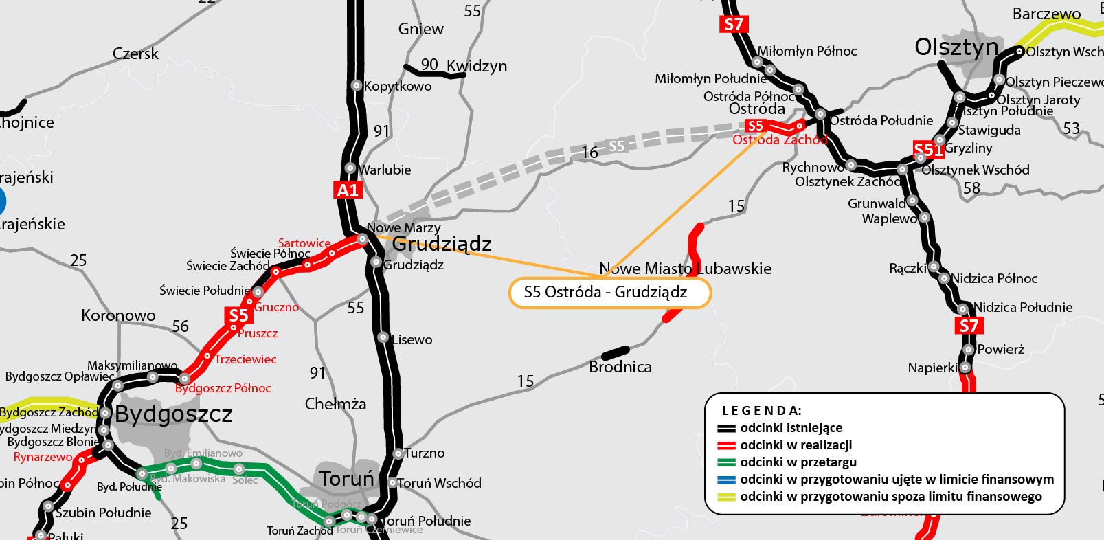 - Cała S5 między Ostródą a Grudziądzem powstanie do końca 2032 r.